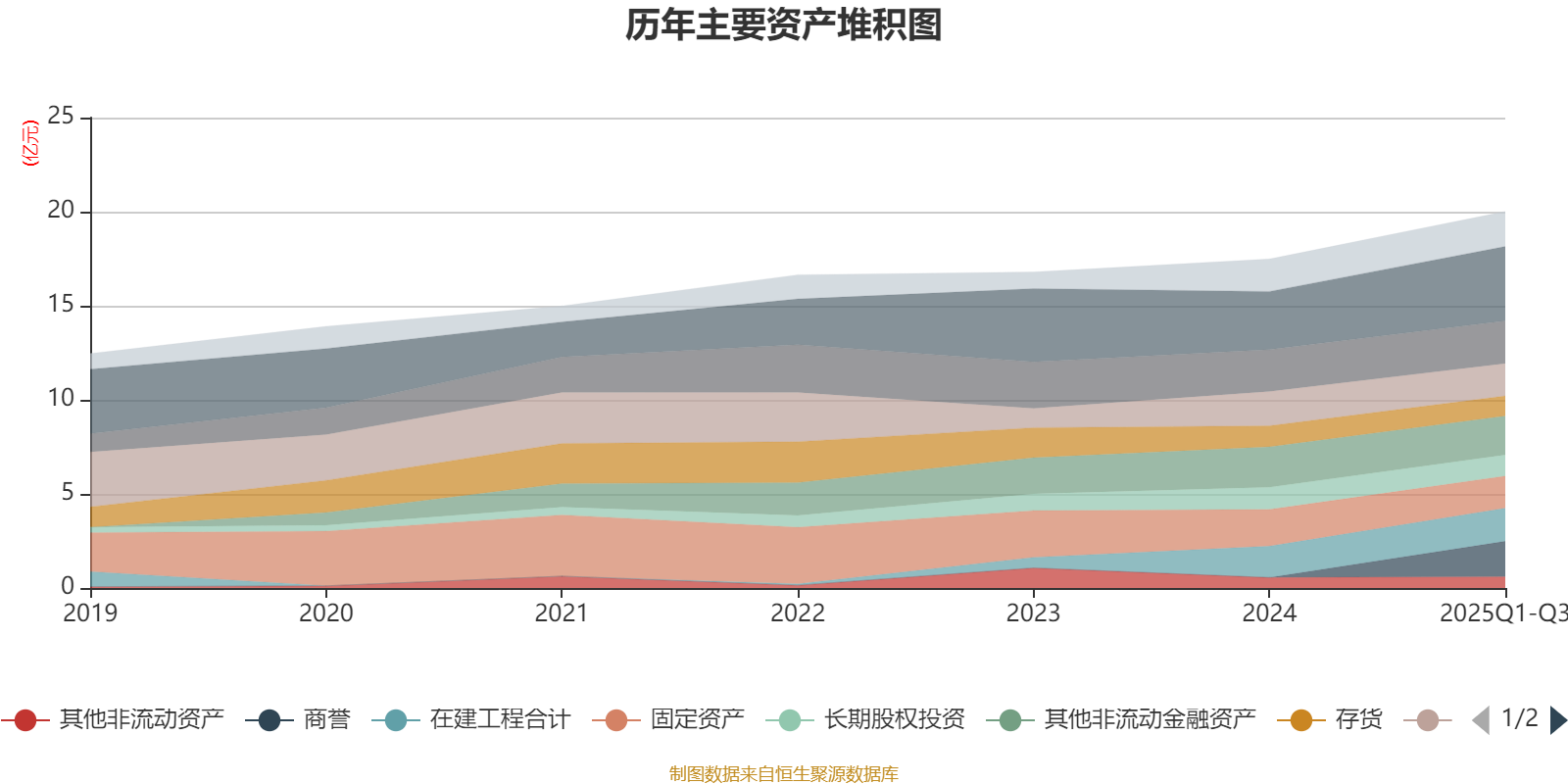 资产重大变化方面,截至2025年三季度末,公司商誉占公司总资产的9.42%,上年末为0;固定资产较上年末减少12.59%,占公司总资产比重下降2.63个百分点;一年内到期的非流动资产较上年末减少72.11%,占公司总资产比重下降2.62个百分点;货币资金较上年末增加28.15%,占公司总资产比重上升2.12个百分点。