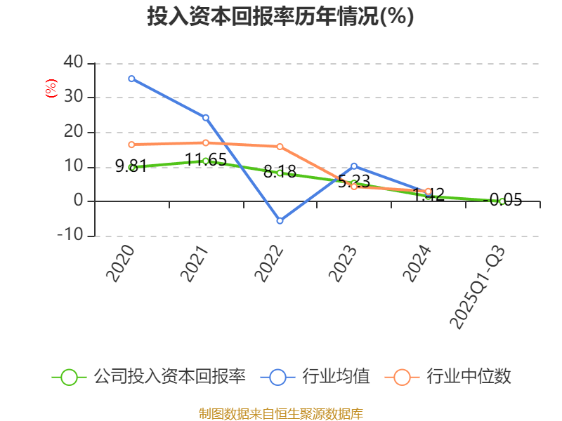盈利能力方面, 2025年前三季度公司加权平均净资产收益率为0.38%,同比下降1.21个百分点。公司2025年前三季度投入资本回报率为-0.05%,较上年同期下降1.13个百分点。